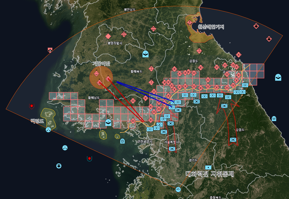 - 한미 합동 훈련 시 사용되는 상황도를 시뮬레이션합니다. 상황도 구성에 필요한 모든 유형의 군대부호를 활용하여 실제 훈련 시와 유사하게 지도 상에 배치할 수 있습니다. 모의 전투를 묘사하는 애니메이션을 추가하여 현장감을 강화했습니다.
